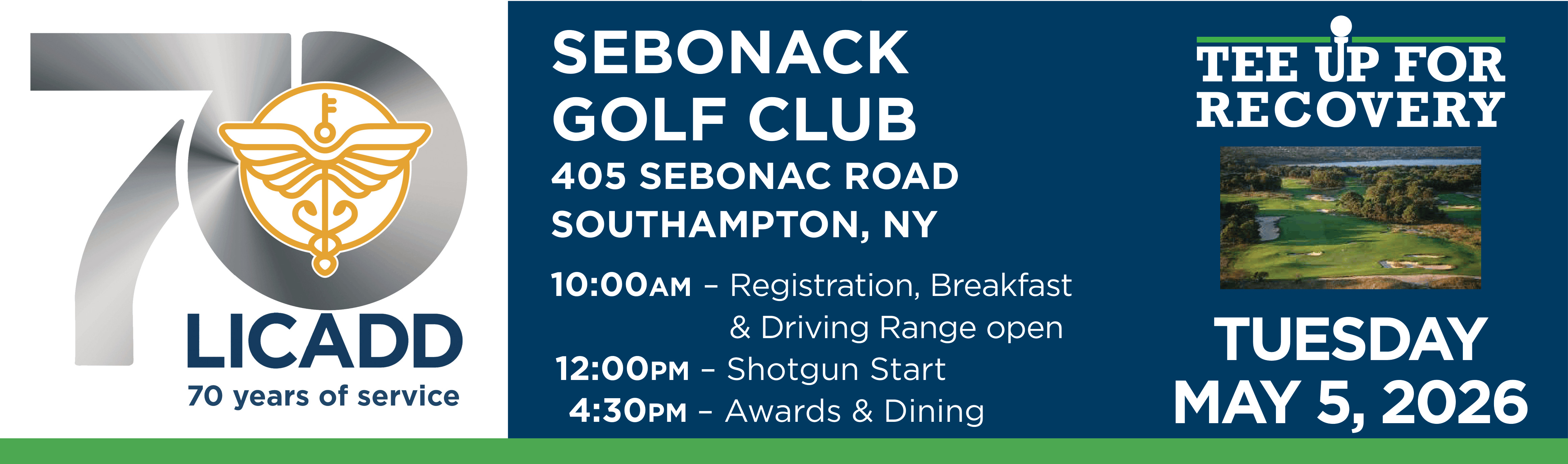 Join LICADD for the 70th Anniversary Tee Up For Recovery Golf Tournament (formerly Tee Off For Teens Golf Tournament) at the beautiful Sebonack Golf Club on Tuesday, May 5, 2026. As teens across Long Island face the ongoing opioid and fentanyl crisis, LICADD serves as a lifeline for students, parents, and educators by providing life-saving prevention education and support programs.
