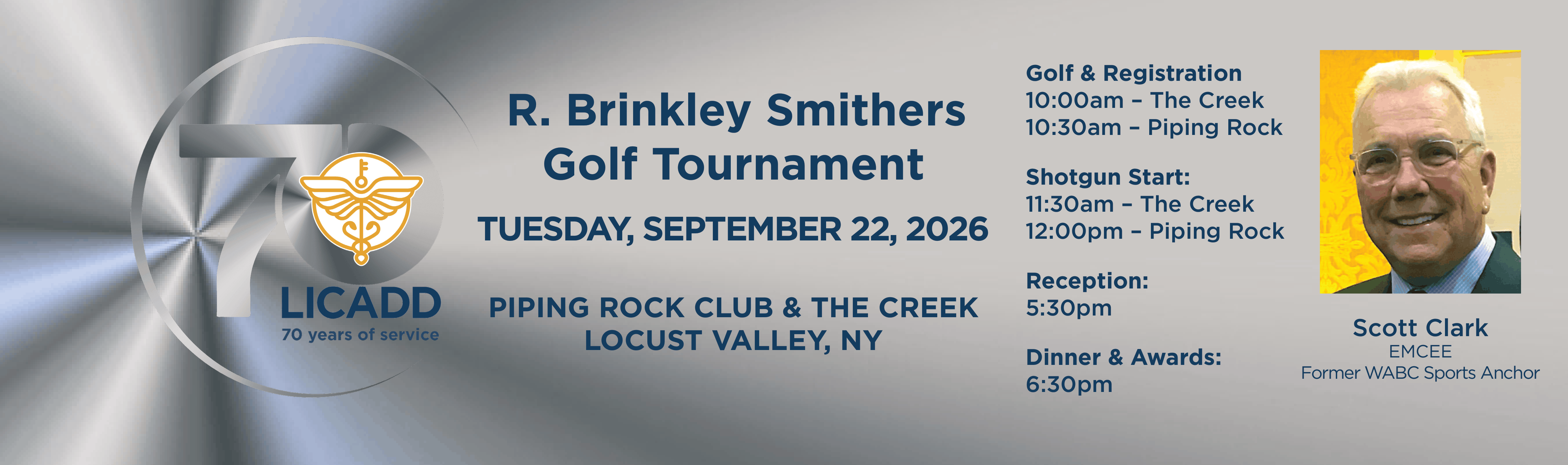 Celebrate LICADD’s 70 years of dedicated service to the community at our Annual R. Brinkley Smithers Golf Tournament on Tuesday, September 22, 2026 at The Creek and Piping Rock Clubs!