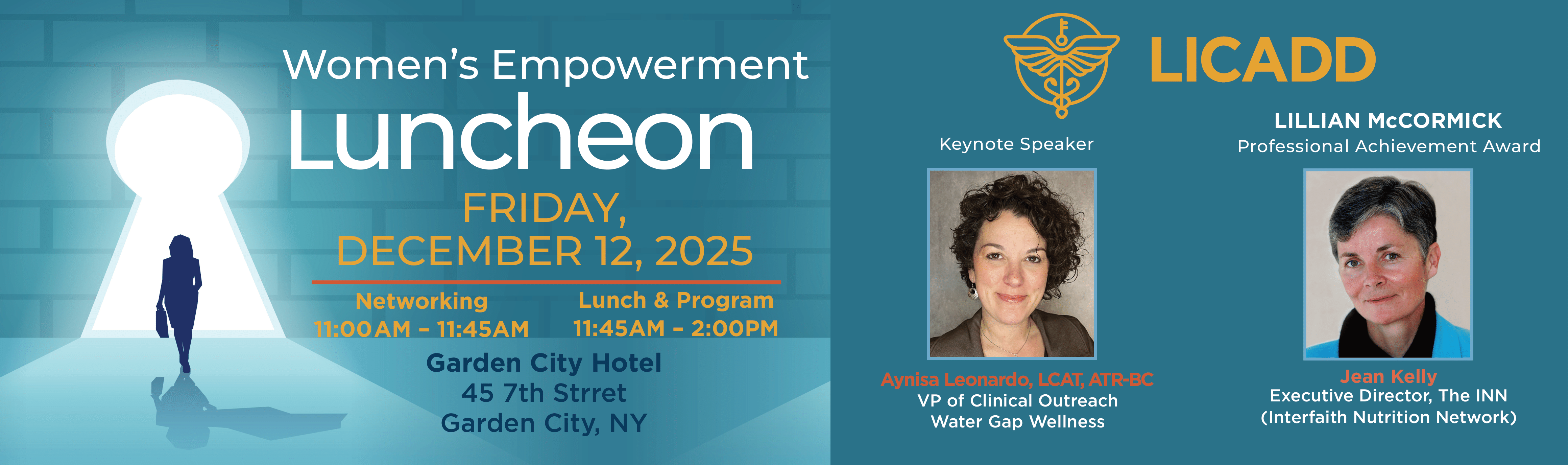 Join LICADD on Friday, December 12, 2025 for the 3rd Annual Women's Empowerment Luncheon at The Garden City Hotel. This year we have the distinct privilege to honor Jean Kelly, Executive Director of The INN, with the Lillian McCormick Professional Achievement Award.